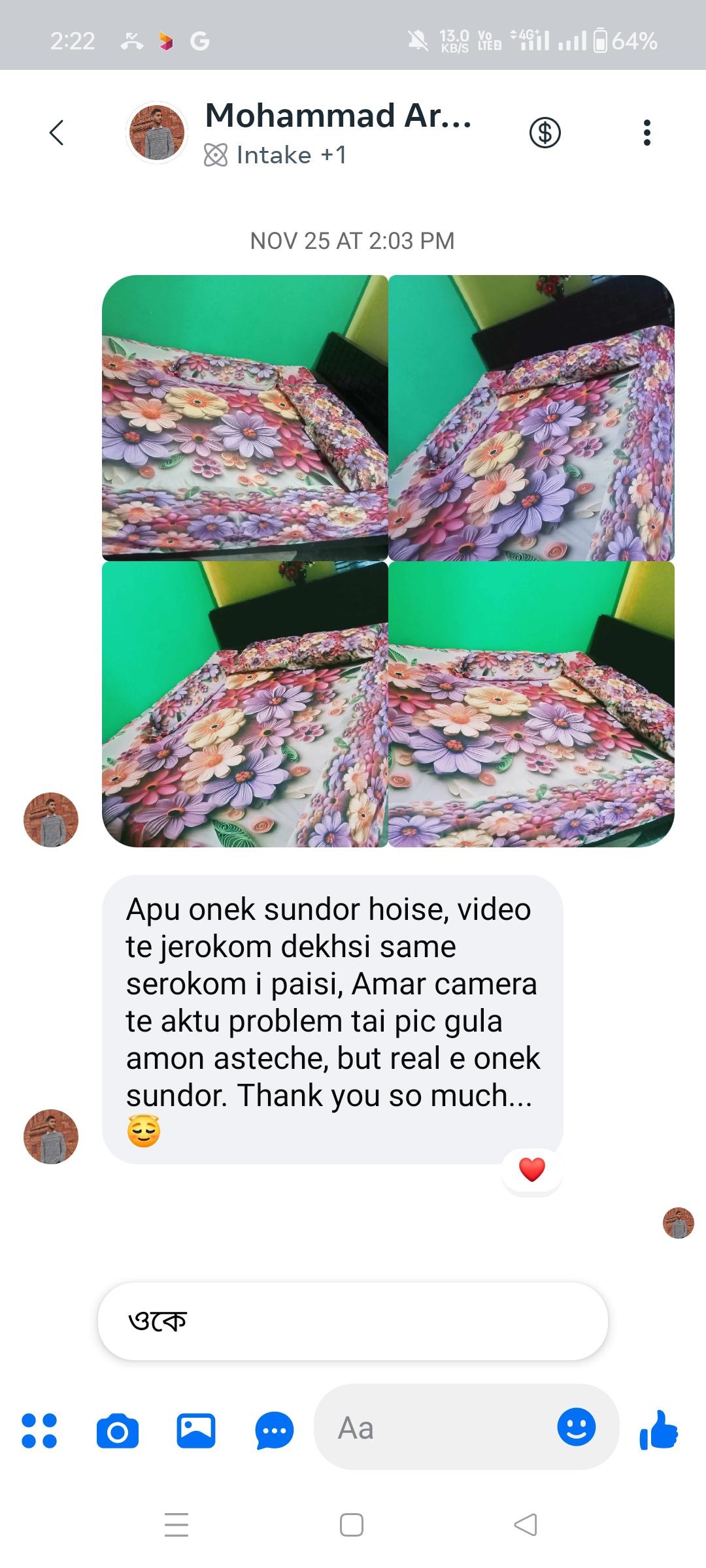 ✅ আমাদের বেডশীট গুলো ওজন করা 1000+ গ্রাম থেকে 1100 +- গ্রাম পর্যন্ত আছে এবং অনেক মোটা এবং সবচেয়ে হাই কোয়ালিটি কাপড় বাংলাদেশের একমাত্রই সবচেয়ে কম দামে আমরা সবচেয়ে হাই কোয়ালিটি কাপড় দিচ্ছি গ্যারান্টি। এটি ধুয়ে দিলেও এর রং এর কোন পরিবর্তন হয় না।